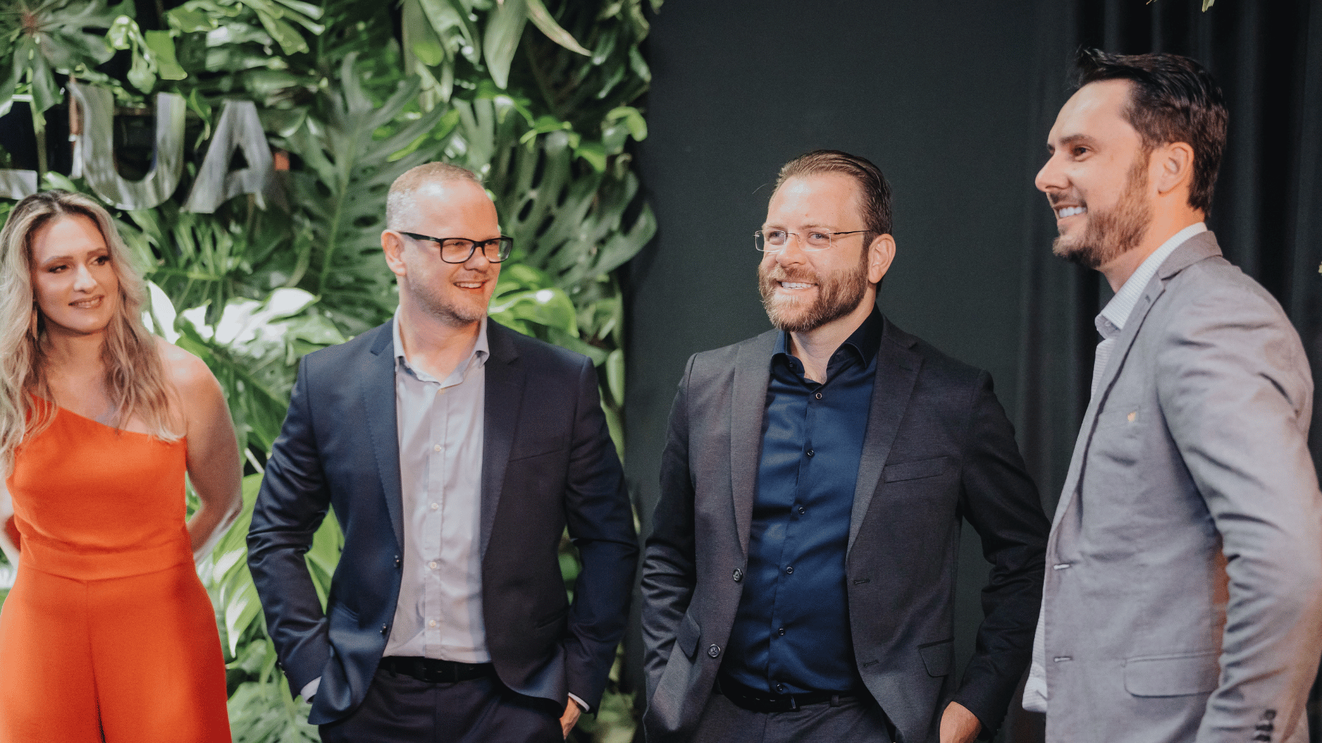 Françoise Koch Soares, Daniel Miecznikowski, William de Julio de Oliveira e empresário Pedro Tochetto, proprietário da Biowatts Energia Solar, amigo e parceiro da Evolua Consultoria, na festa dos 5 anos, em Cascavel